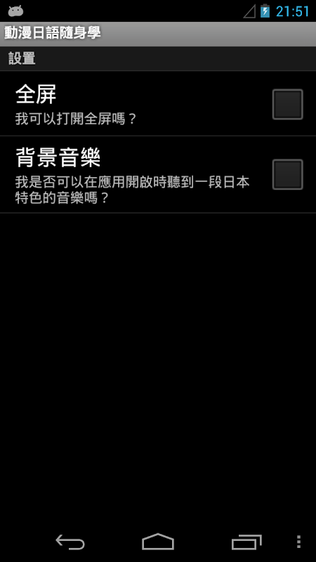 - 軟體下載:在 Android 手機中開啟 Play 商店,搜尋「動漫日語隨身學」即可下載安裝,或「按這裡」從網頁遠端安裝。