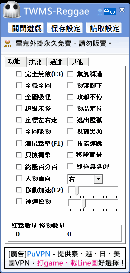 TWMS-Reggae 楓之谷雷鬼159.1.1(對應遊戲更新) 取得連結 Facebook X Pinterest 以電子郵件傳送 其他應用程式 作者: knowlet - 8月 10, 2013 由於持續有人一直往舊版雷鬼那篇文章鑽,導致 Page Rank 持高不下.. 為了引導小白(阿不是)反正也很久沒發外掛了,最近雷鬼改的介面又蠻可愛的,就來分享一下囉... 程式名稱:楓之谷雷鬼159.1.1(對應遊戲更新) 程式選寫:魷魚(zeach01)、特別感謝偷比(Toby)、草泥馬(guardian)、Inndy RC語音: ╔雷❡鬼╗綜✽合✽娛✽樂✽區 (25735964)(部分功能須至 RC 申請會員後才能使用) 功能介紹:點我即可 開啟方法:點我即可 掃毒報告:點我即可 (本程式有加殼有加殼可能導致防毒誤判) 注意事項:修改遊戲記憶體為違反遊戲規則,如被封號請自行負責與作者無關 外掛下載:點我即可 本外掛非 "zeach01"OR "楓之谷雷鬼" 所發表可能內含病毒或詐騙 取得連結 Facebook X Pinterest 以電子郵件傳送 其他應用程式 留言 匿名2013年8月12日上午9:23いつも挨拶成功を搬送されてきた情報をありがとうございました回覆刪除回覆knowlet2013年8月12日下午1:41あなた気を遣いすぎですよ刪除回覆回覆回覆新增留言載入更多… 張貼留言